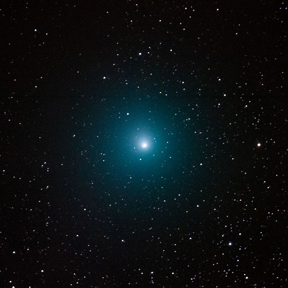 46P/Wirtanen is a short period (5.4 years) comet that at perigee is very close to Earth's orbit. In 2018 it passed just 0.07 AU from the Earth (only about 30 times farther than the Moon), and became bright enough to be visible to the naked eye, and a very nice object in binoculars. This comet was the original target of the EAS's Rosetta mission, but a launch delay resulted in that spacecraft ultimately being sent to a different comet, 67P/Churyumov–Gerasimenko.