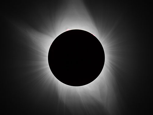 It is a remarkable coincidence that the angular diameter of the Moon in the sky is exactly that of the Sun. Because of this, when the positions of the Earth and Moon are just right, the Moon can perfectly block the disk of the Sun, allowing us to see the otherwise invisible solar corona. This is an sight of unbelievable beauty; once seen it is never forgotten. I have been fortunate to observe five total solar eclipses. I hope to see many more.